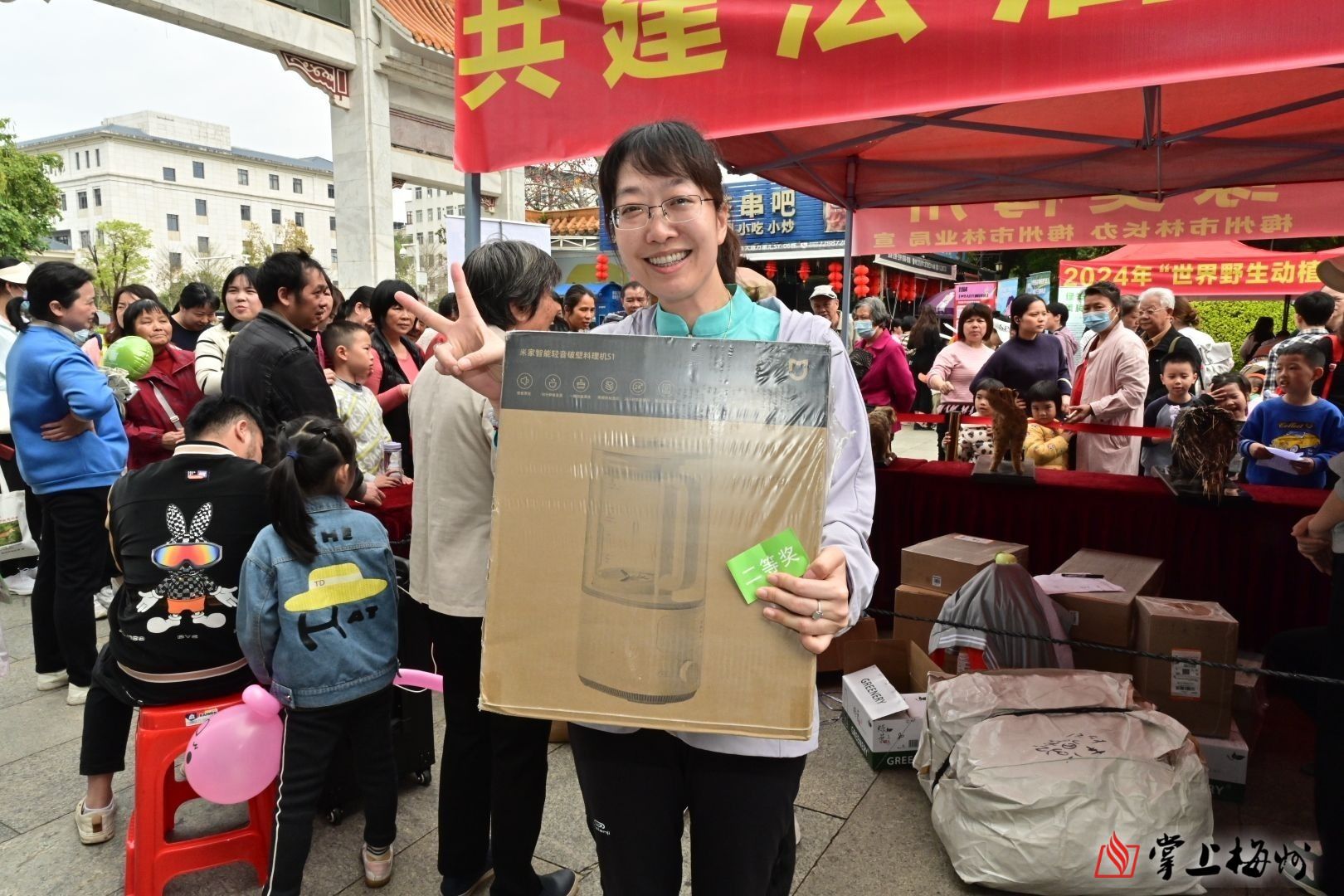 活动现场,梅州日报开展有奖问答、抽奖活动。