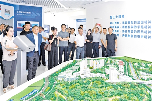 梅州制造业企业代表参观哈尔滨工业大学(深圳)综合展馆。(林翔 摄)
