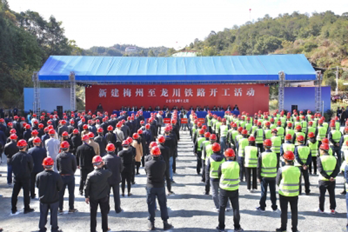 新建梅州至龙川铁路开工仪式现场。