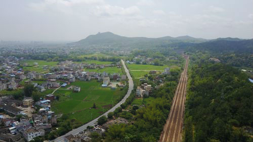 站前路与广梅汕铁路“并驾齐驱”。(图片来源:梅州日报,刘海阳 摄)