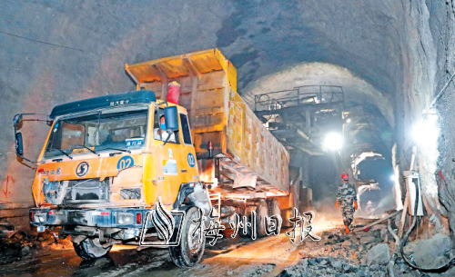 交通洞工地作业现场。(图片来源:梅州日报 张炳锋 摄)