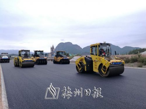 梅平高速沥青路面摊铺。(图片来源:梅州日报)