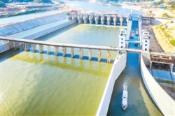 昨日下午3时许,记者在韩江高陂水利枢纽工程一期左岸重力坝上看到,通过液压机控制,上闸首人字门缓缓打开。在工作人员指引下,两艘先导船先后驶入闸室,紧随其后的两艘300吨满载运沙船也在引导下驶入,通过浮式系船柱固定船身。上闸首人字门关闭后,闸室内开始进行排水,待闸室水位与下游水位一致后,下闸首人字门打开,4艘船舶陆续平稳驶出船闸。