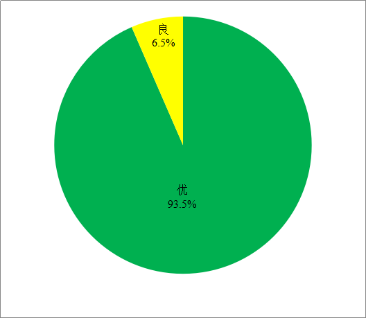 2025年第三季度梅州市环境空气质量有效监测天数92天。城市环境空气质量综合指数为1.73,环境空气质量指数(AQI)范围13~63,其中,空气质量优的天数86天,良的天数6天,优良率100%,同比持平。