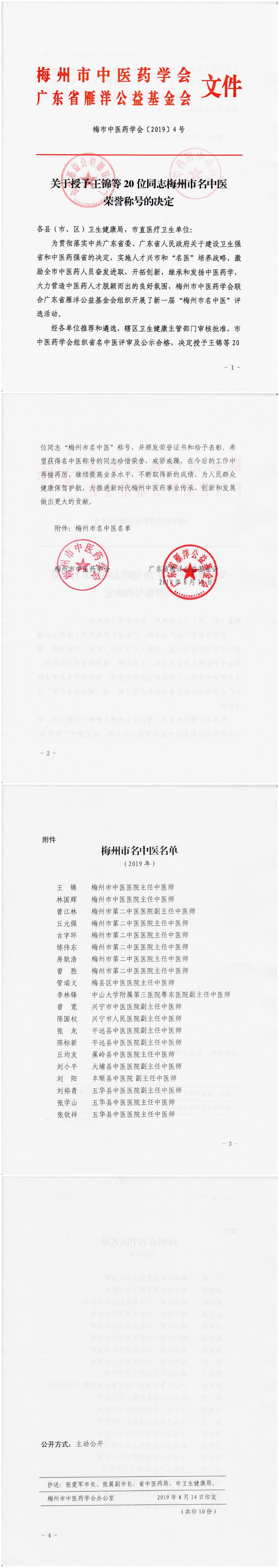梅州市人民政府门户网站 梅州市卫生健康局 通知公告 关于授予王锦等20位同志梅州市名中医荣誉称号的决定