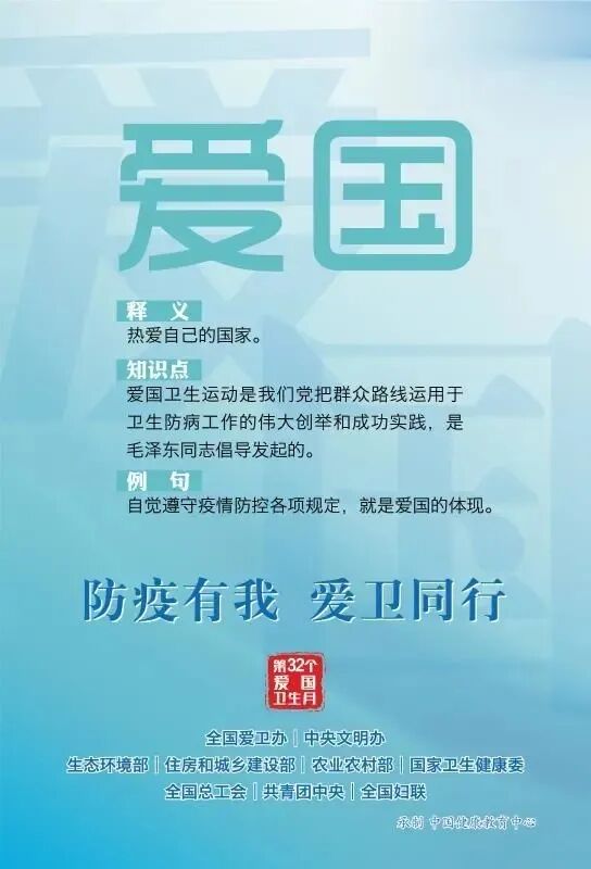爱国卫生人人受益,疫情防控人人有责。在以习近平同志为核心的党中央坚强领导下,全国人民同舟共济、众志成城,新冠肺炎疫情防控取得显著成效。