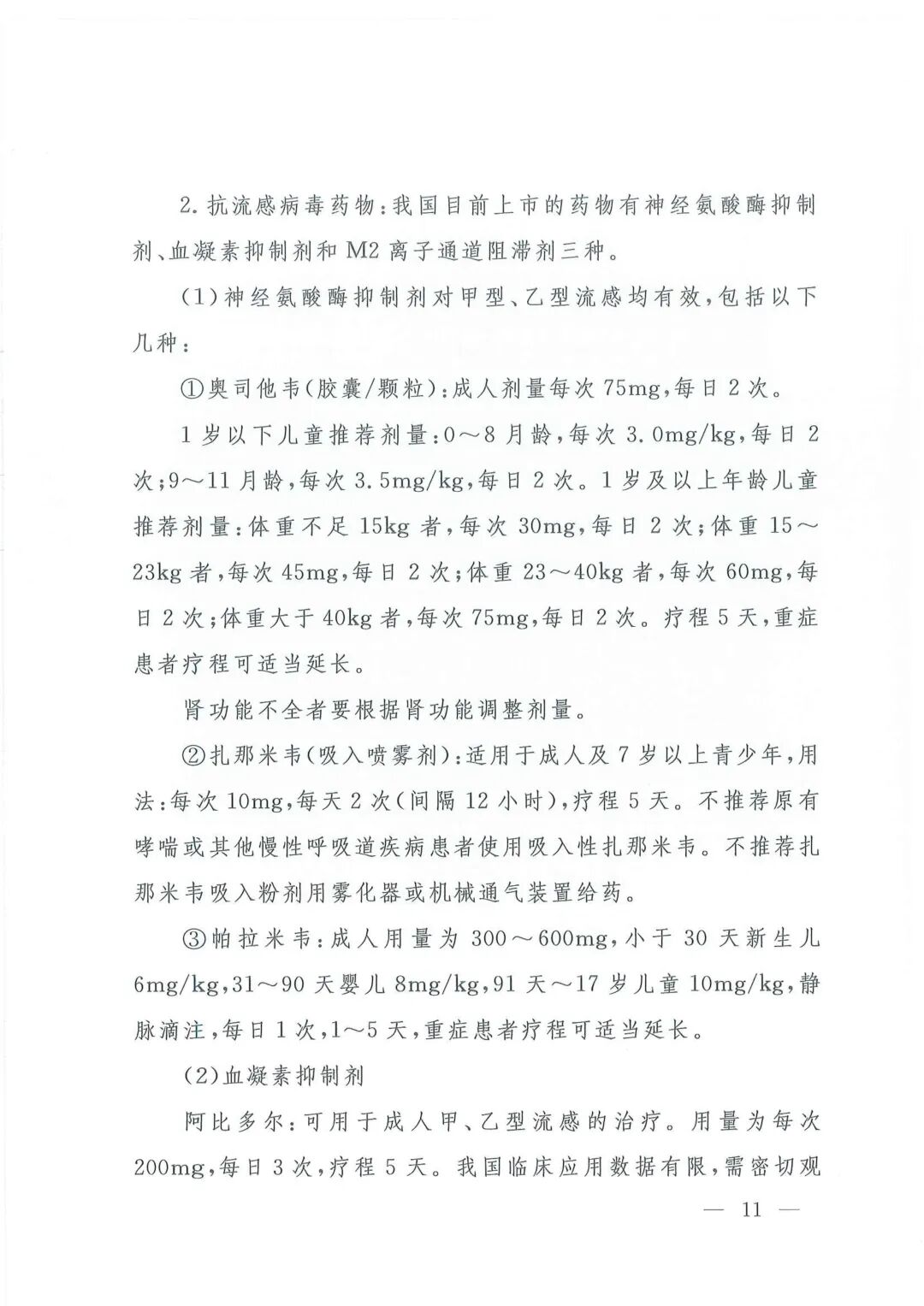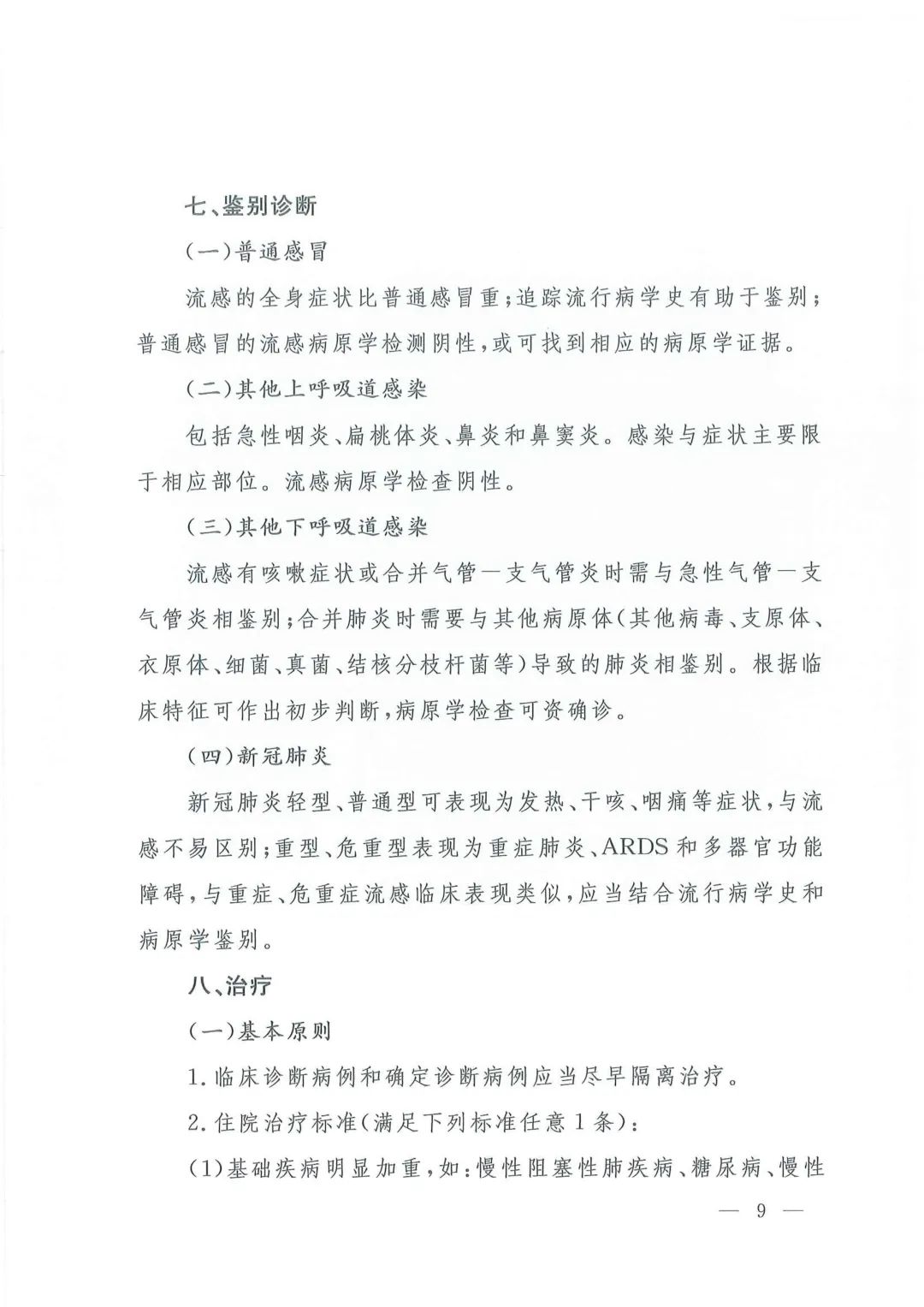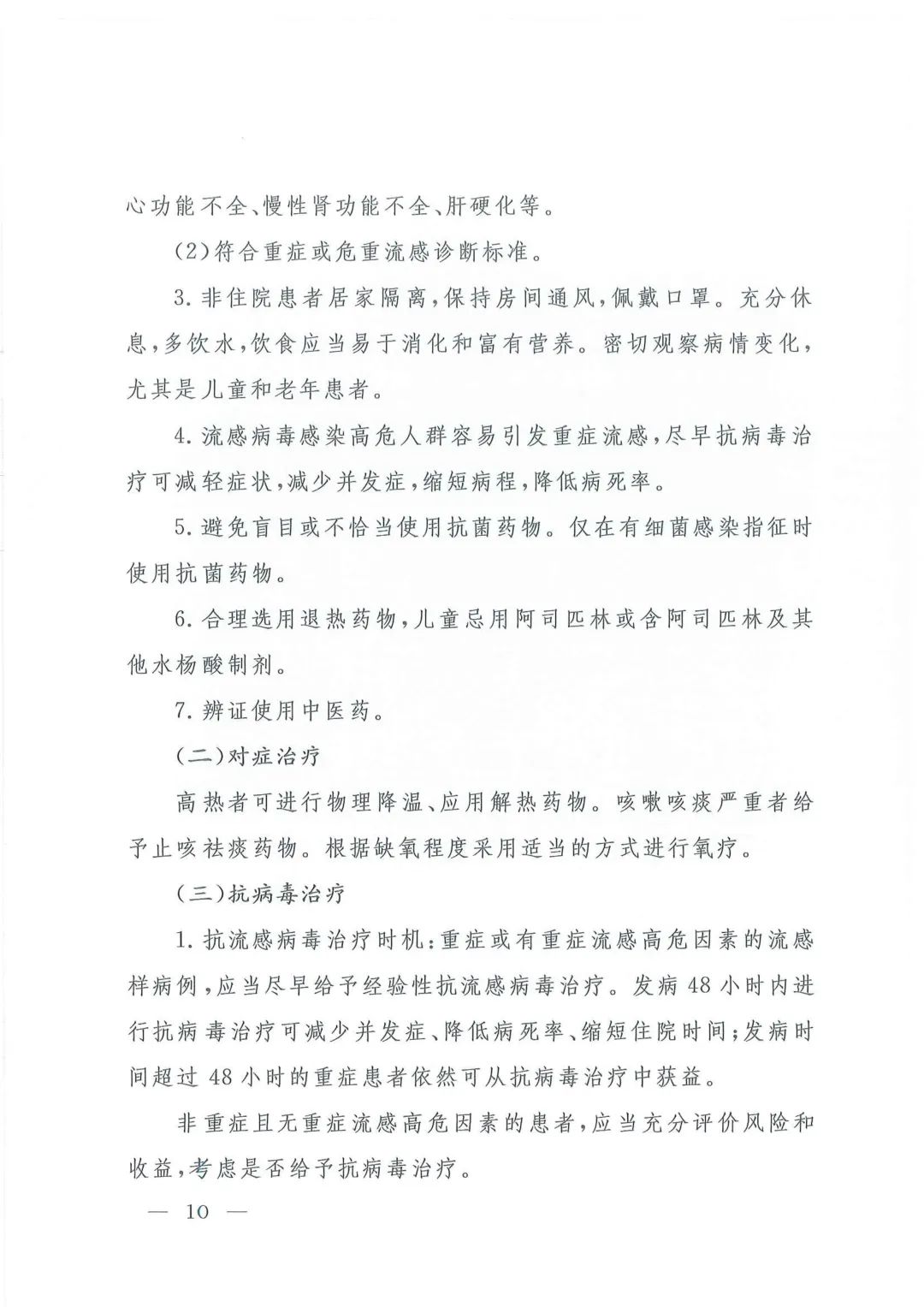 关于印发流行性感冒诊疗方案(2020年版)的通知