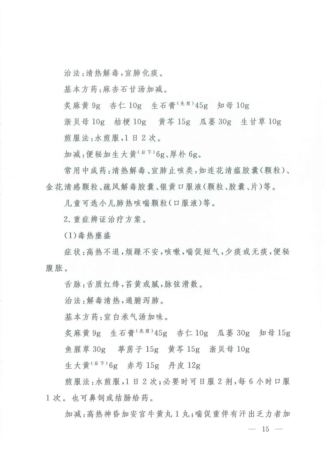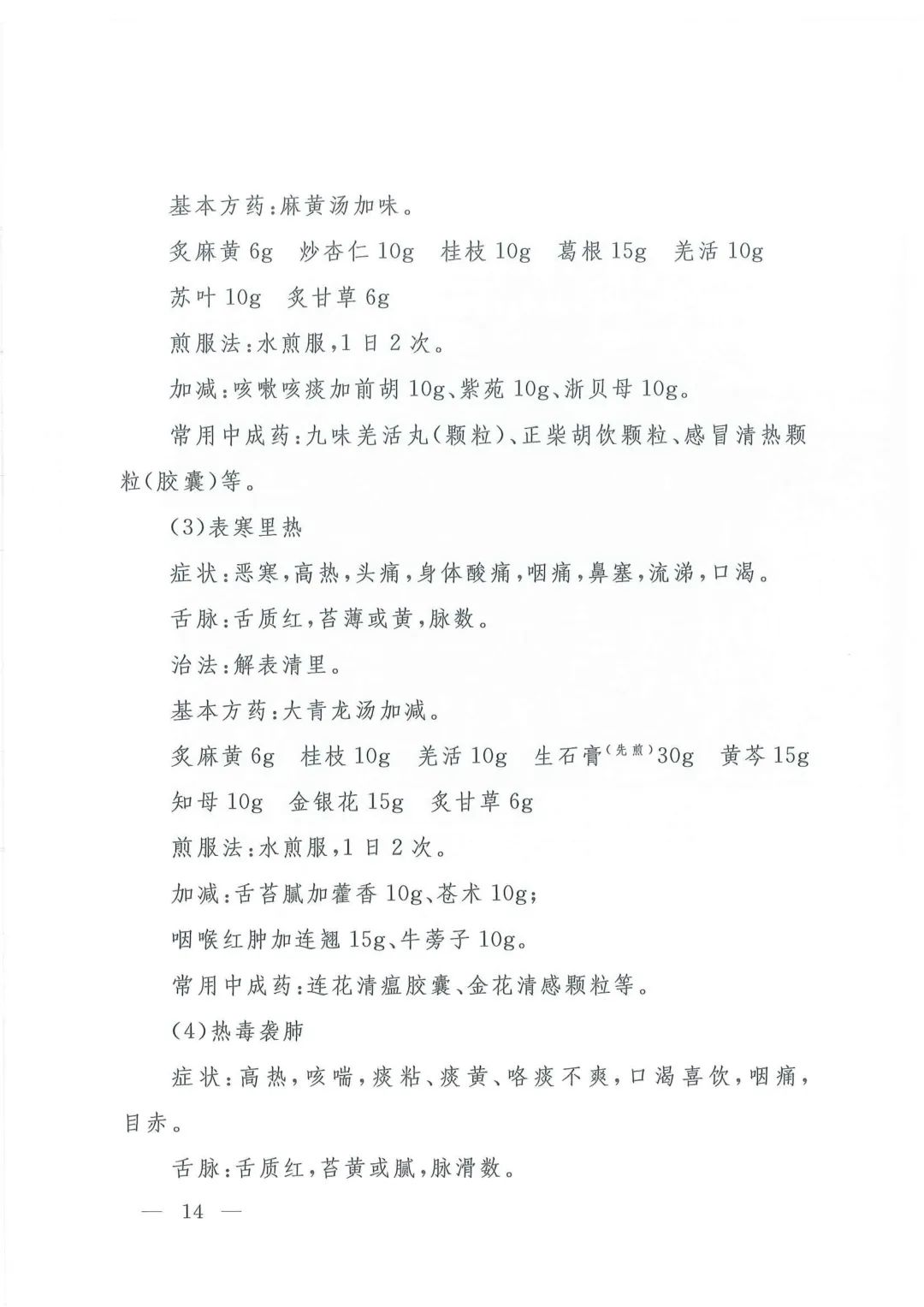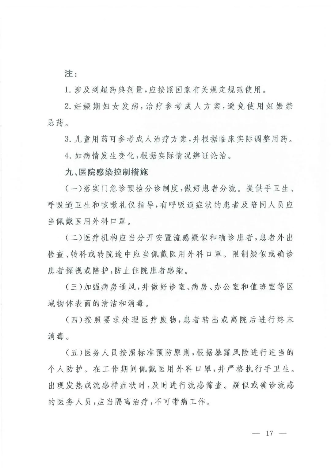 关于印发流行性感冒诊疗方案(2020年版)的通知