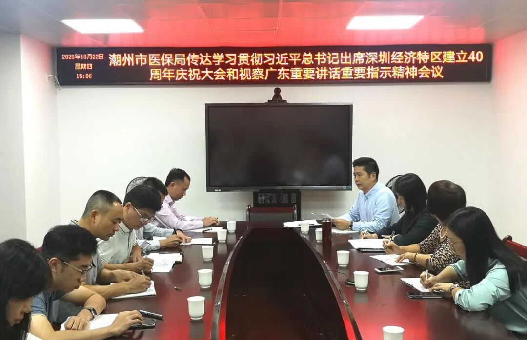 10月16日下午,汕头市医疗保障局召开党组(扩大)会议,传达学习习近平总书记出席深圳经济特区建立40周年庆祝大会和到广东考察的重要讲话、重要指示精神,以及省、市有关会议精神,研究贯彻落实意见。