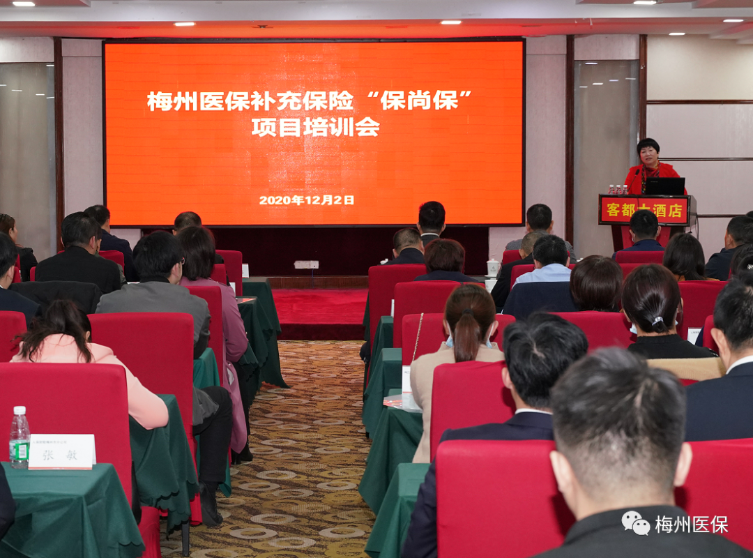 当天下午,梅州市医保补充保险“保尚保”项目培训会召开。市医疗保障局党组书记、局长黎红英,人保财险梅州分公司总经理涂必峰出席会议并讲话。培训会就梅州医保补充保险“保尚保”项目实施背景、政策依据、好处意义、保障内容、投保方式等进行了详细解读,并就如何做好宣传发动、投保缴费、信息建设、制度保障、理赔服务等工作进行了部署,推动“保尚保”这个惠民利民的实事落地见效。
