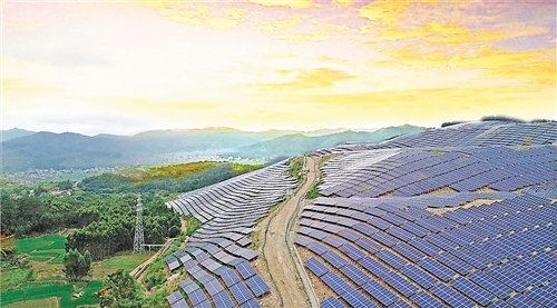 位于东石镇尖山矿区的平远利天光伏发电项目现场,一排排光伏板向阳而列,为村集体带来稳定收益。(平远县全域办供图)