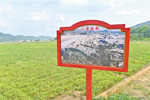 东石镇明洋村全域土地整治现场,新旧对比图的呈现,让大家更直观感受土地平整带来的变化。(钟小丰 摄)