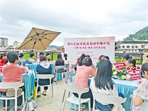 梅江区妇女就业创业专场沙龙活动在阁公岭村“美丽庭院”示范户中举行。(受访者供图)