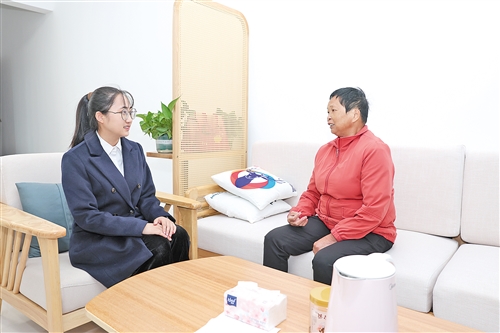 ④国企设置专门岗位,扶持受灾群众就业创业。图为国企物业管家郭小金拜访业主。