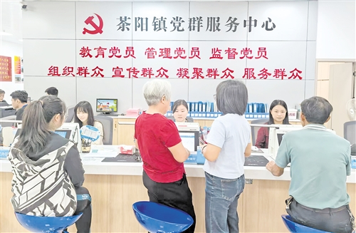 群众在茶阳镇党群服务中心用新设备办理业务。
