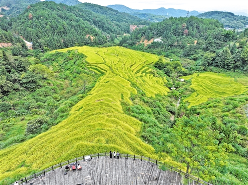 龙颈梯田染金 丰收美景如画