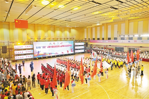 梅州市第十届运动会暨第九届残运会开幕式上,举行升国旗仪式。(吴腾江 摄)