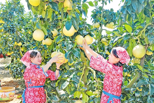 大埔县青溪镇溪口村高峰农业蜜柚种植基地采摘现场。(高讯 摄)